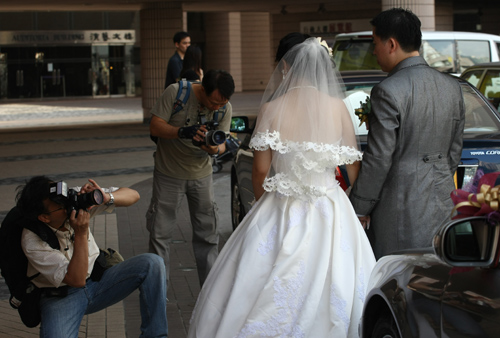 圖:金融風暴下,經濟環境轉差,婚禮顧問教路拍結婚相選套餐可慳錢 (本報記者 林雨燊 攝)