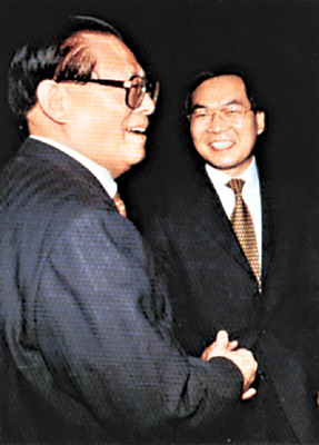 圖:與前國家主席江澤民親切握手