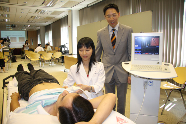 圖:中大臨床導師黃麗虹示範使用肝纖維化掃描器(本報攝)