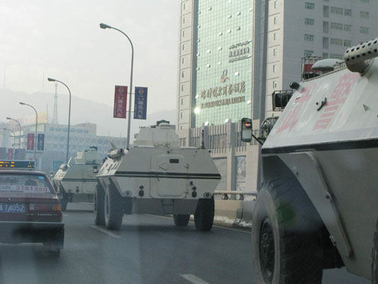 圖:行走在烏魯木齊市內的武警裝甲車(楊清林攝)