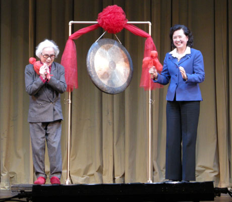 圖:紅線女(左)為羊城國際粵劇節開幕鳴鑼(本報攝)