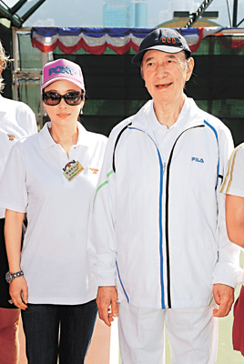 「歡樂滿東華慈善網球大賽」昨午舉行,賭王何鴻燊和鄭嘉穎等應邀出席比賽籌款,最後成功籌得八十八萬。不過,向來「牙擦擦」的賭王,最後仍是敗給嘉穎那一組,但他都大方笑言輸波不緊要,最重要是籌到錢,果然有大將之風。不過,當提到前女婿許晉亨與李嘉欣的婚事,賭王坦言一向不欣賞對方,更直斥許晉亨以前有個又靚又好的太太都仍不心足,他亦不會畀面出席婚宴。