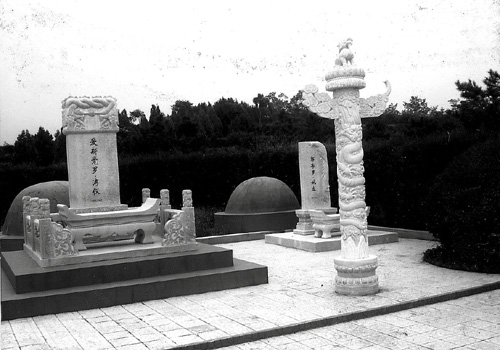宣統陵在他登基後的第二年,就在清西陵動工,已經完成了地宮奠基、明樓寶城等基礎工程。辛亥革命後,清王朝倒台,宣統陵也就停工了。溥儀從皇帝到平民,死後葬八寶山公墓。前幾年遷至清西陵附近的一處陵園之中。那陵園前有曲水,後有青山,樹木葱蘢,鮮花簇擁,一排排的墓碑在坡面上展開,北京許多人把先人送到這裡。溥儀墓在更高處,佔地也較廣,華表、石碑、供桌、石圍欄,顯得十分清爽。婉容墓在其近旁。墓前還有一間配殿。在這樣景色宜人的高敞之處安息,反倒比在清西陵內少點壓抑氣氛。