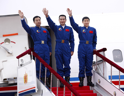 圖:三名神七航天員翟志剛(中)、劉伯明(右)及景海鵬(左)將於下周五訪港(資料圖片)