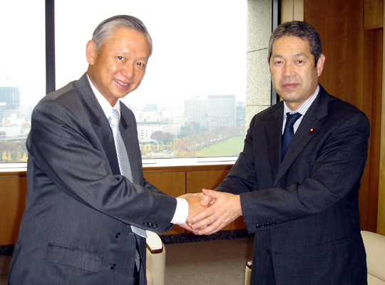 圖:李少光與日本國家公安委員會委員長佐蕂勉會面