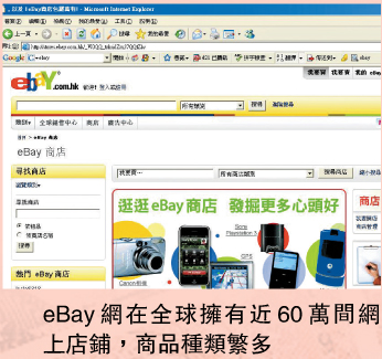 圖:eBay網在全球擁有近60萬間網上店鋪,商品種類繁多