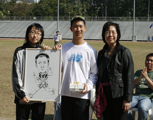 圖:蘇樺偉(中)獲該校贈送紀念品(本報攝)
