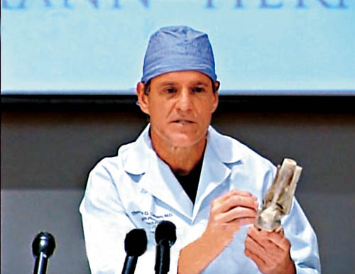 圖:劉翔手術的主刀醫生克蘭頓指劉翔的手術十分