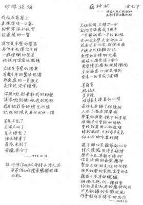 圖:余光中手跡