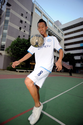 圖:擁有教師與甲組球員雙重身份的張天德堅持自己兒時的夢想 (本報攝)