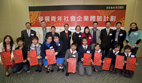 圖:葉約德(左五)與參與「星展青年社會企業體驗計劃」揭幕儀式的嘉賓及學校代表一同合照