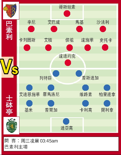 歐冠杯C組最後一輪兩場比賽都已屬例行公事,其中肯定包尾出局的瑞士巴素利,明晨主場迎擊以小組次名出線的葡超球隊士砵亭。巴素利今戰在主場謝幕,估計爭勝心會較客軍強,可以小注主隊或攻過關。