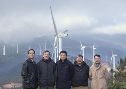 圖:麥堅(左二)、蔡肇中(中)及項目主要負責人攝於大理風場
