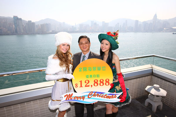 長實(00001)旗下全港最大型海景家庭式雙子酒店紅磡海灣軒,為迎接聖誕,決定推出12間2房2廳600餘平方呎維港海景單位,以優惠租金12888元益用家,較同類單位普遍租金1.7萬至1.8萬元有28%折扣優惠。