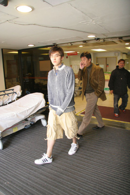 圖:顧麗華丈夫及兒子離開醫院