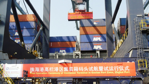 【本報訊】由珠海與香港和黃集團合作投資的珠海港高欄港區集裝箱碼頭昨日投入試運行。業內人士指出,這標誌着珠海港由餵給港向幹線港的重大轉變,極大增強了珠海港參與國際航運的競爭力。