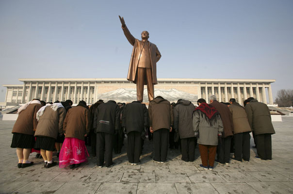 圖:韓國國會國防委員長稱,朝鮮現在應該已經製造了二十多個核彈,圖為平壤金日成像前(美聯社)