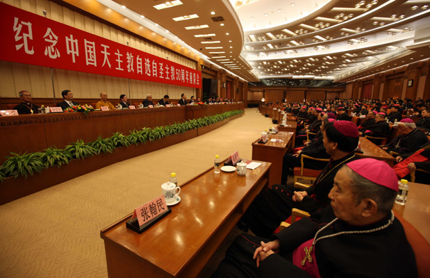 圖:中國天主教愛國會、中國天主教主教團19日在北京舉行紀念中國天主教自選自聖主教50周年座談會 (新華社)
