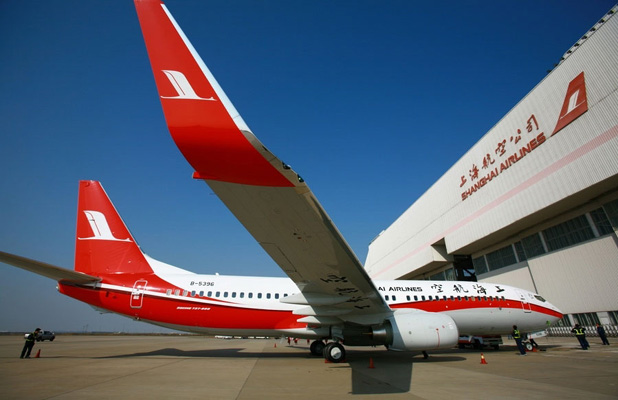 圖:上航新塗裝的波音737-800客機(本報攝)