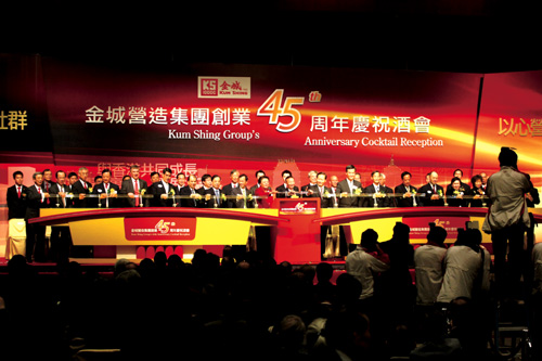 金城營造集團創業四十五年來,堅持「以誠處事,以客為尊」的營商宗旨,堅持為本地政府工務部門及公共事業機構提供高質素的工程承辦服務,為香港的持續發展作出重要貢獻,飲譽業界,成績有目共睹。集團日前假香港會議展覽中心舉行創業四十五周年慶祝酒會,當晚冠蓋雲集,逾千賓客共同見證了集團四十五年來的光輝成就。