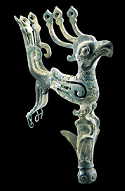 圖:三星堆文物:銅神樹枝頭花蕾及銅立鳥