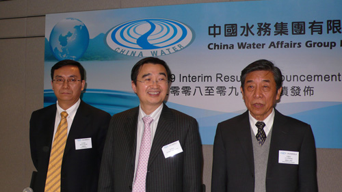 圖:左起:中國水務總裁杜林東、主席段傳良、執行董事李濟生(本報攝)