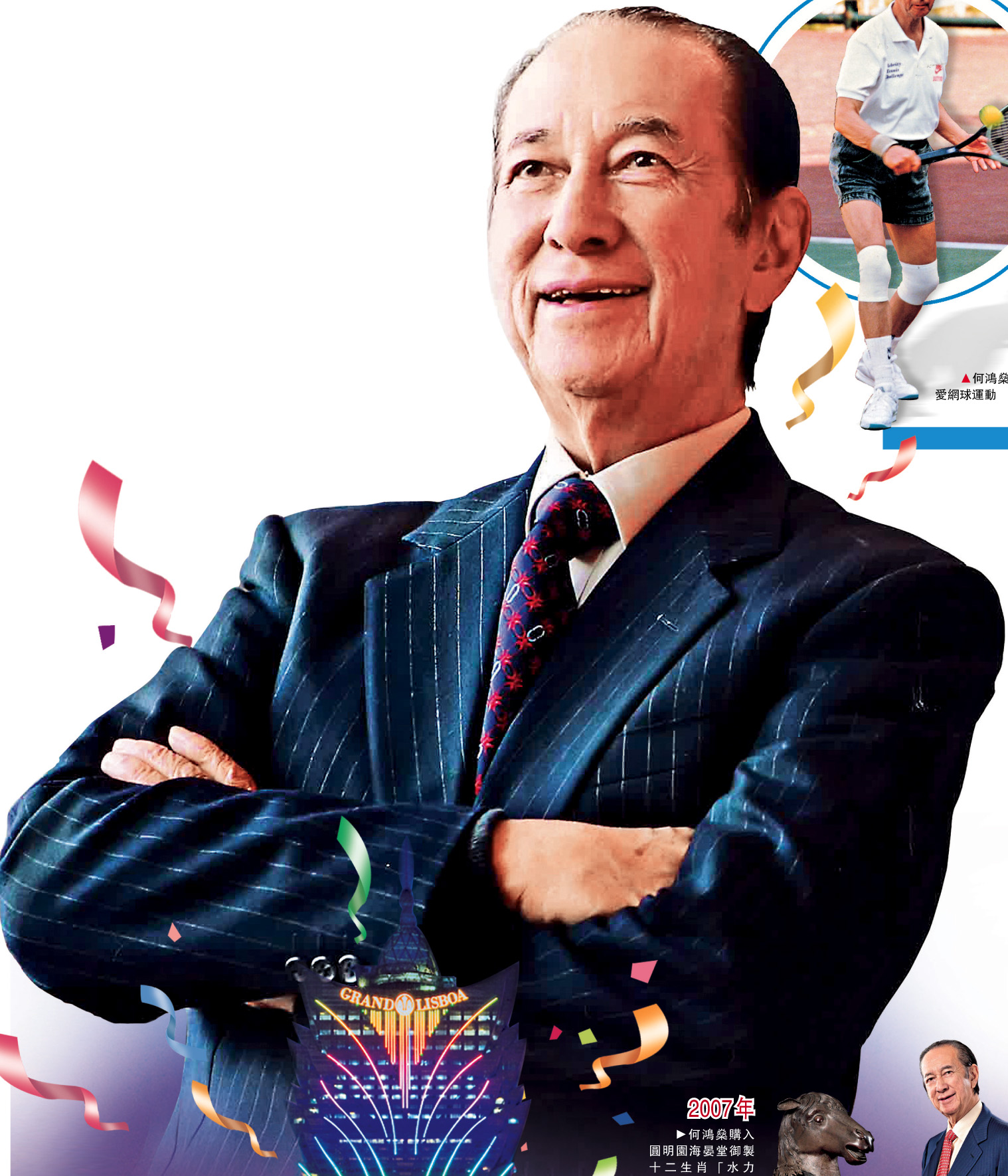 即將過去的2008年,對於何鴻燊來說,喜事連連。這一年,是澳門葡京開業38周年,何鴻燊傾注多年心血的澳門博彩控股有限公司,歷經重重波折,於今年7月16日在香港聯交所上市;澳門博彩股份有限公司的旗艦新葡京,歷經多年建設,隨着新葡京娛樂場於2007年2月11日啟用,酒店部分亦已於今年11月27日隆重開幕,進一步奠定澳門本地博企的引領地位。從舊葡京到新葡京,記載了何鴻燊領導「澳博」的輝煌業績,也見證了港澳經濟走向繁榮的珍貴歷史。
