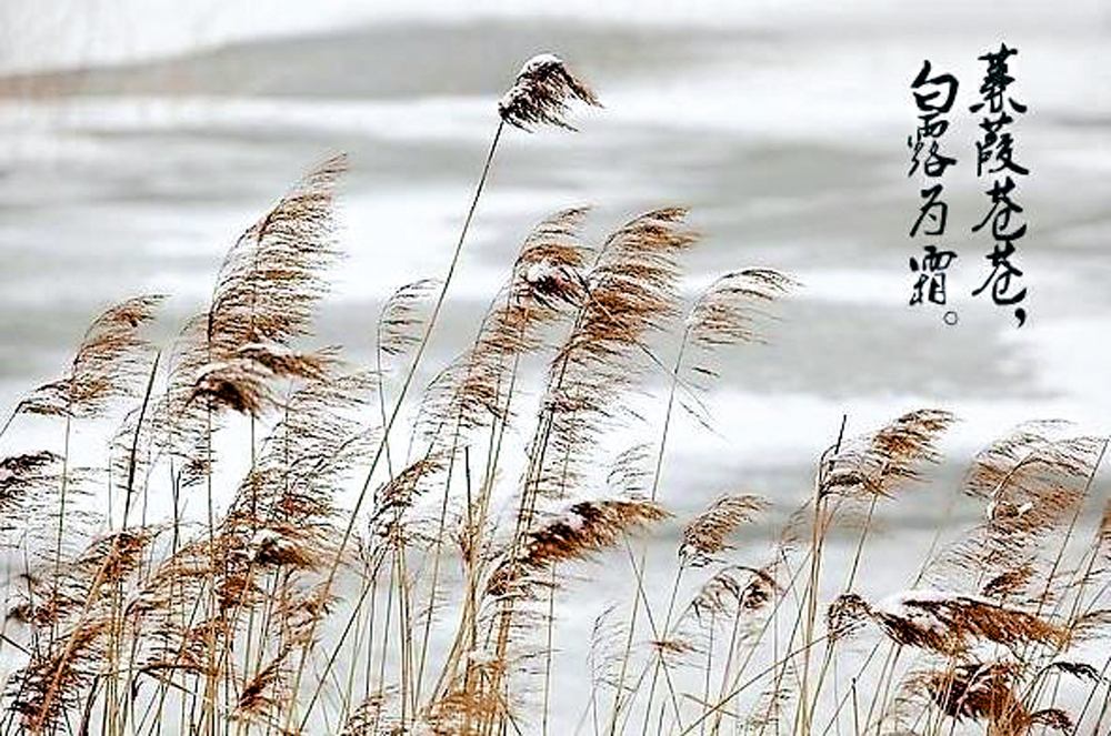 「蒹葭蒼蒼,白露為霜。所謂伊人,在水一方,溯洄從之,道阻且長。溯游從之,宛在水中央。