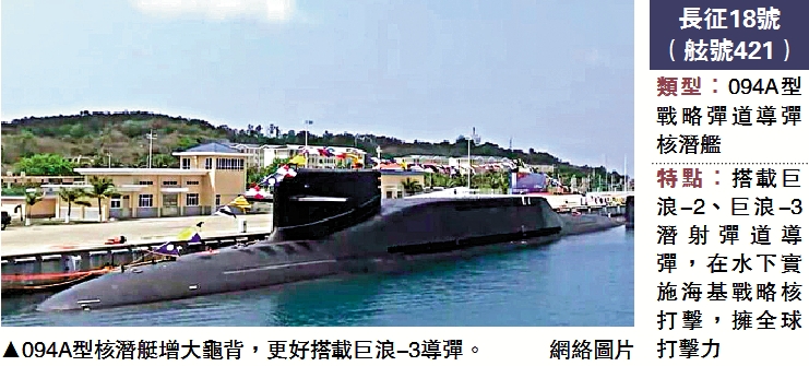 094A型擁有卓越的綜合性能,包括靜音降噪、隱蔽航行、極限深潛、深海發射等方面,均有顯著提升。094A型核潛艇還對龜背進行了增大改型,以便更好地搭載巨浪-3導彈。