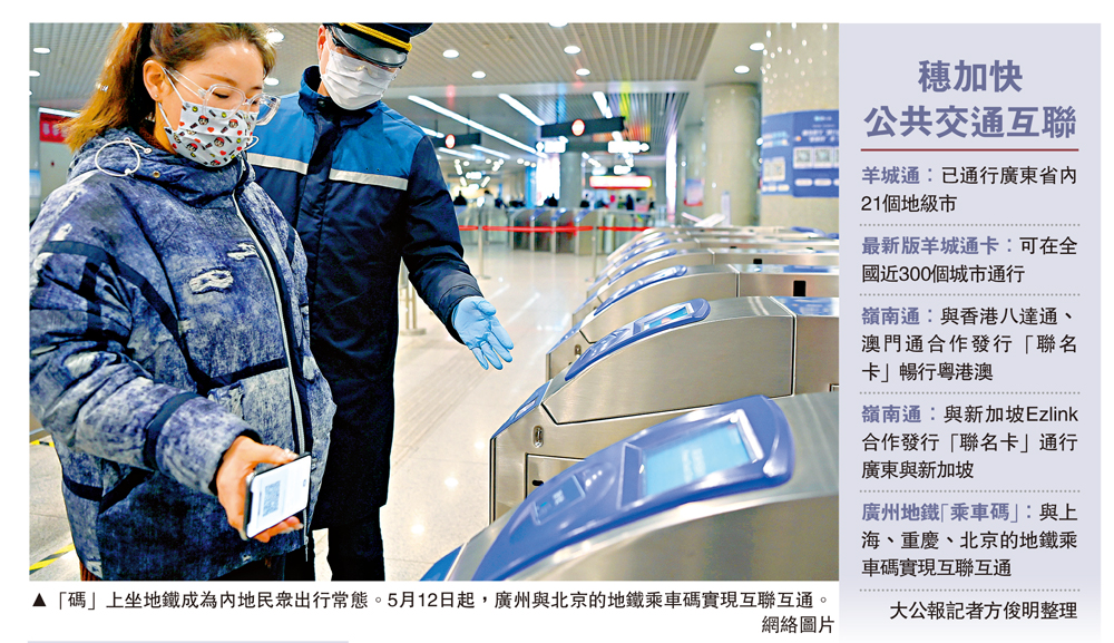 在內地主要城市加速地鐵乘車碼「互聯互通」的同時,粵港澳大灣區綜合交通「一碼通」亦在加快推進。