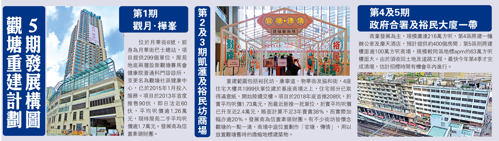 重建範圍包括裕民坊、康寧道、物華街及協和街,4座住宅大樓共1999伙單位建於基座商場之上,住宅部分已取得滿意紙,開始陸續交樓。項目於2018年底首推208伙,折實平均呎價1.73萬元,而最近新推一批單位,折實平均呎價已升至近2.4萬元,賬面計算不足3年賣貴38%,而實際加幅亦逾20%。發展商為信置牽頭財團。有不少街坊皆懷念觀塘的一點一滴,商場中庭位置劃作「官塘·傳情」,用以放置觀塘舊時的微縮地標建築物。