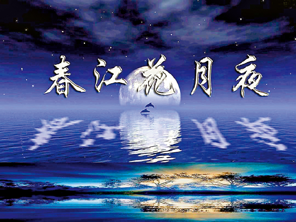 春江潮水連海平,海上明月共潮生。灩灩隨波千萬里,何處春江無月明!江流宛轉繞芳甸,月照花林皆似霰。空裡流霜不覺飛,汀上白沙看不見。江天一色無纖塵,皎皎空中孤月輪。江畔何人初見月?江月何年初照人?人生代代無窮已,江月年年望相似。不知江月待何人,但見長江送流水。
