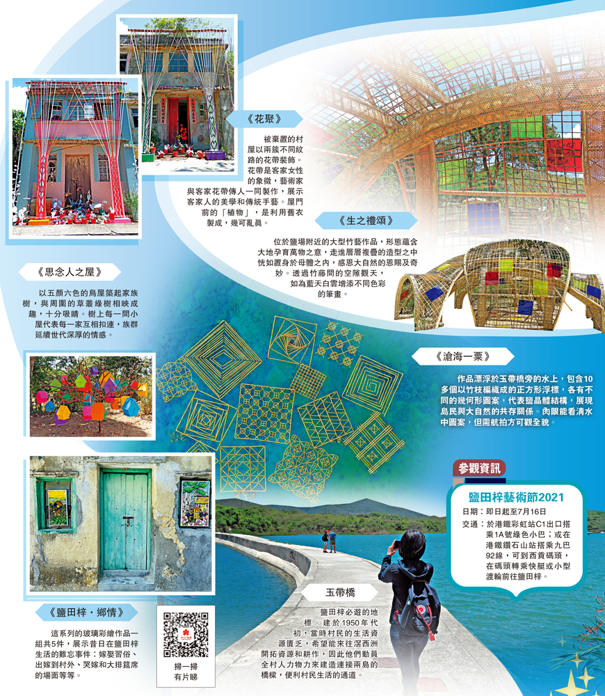 西貢擁有很多隱秘島嶼,向來是港人享受陽光與沙灘的熱門地之一。面積不到1平方公里的鹽田梓,近年因舉辦「鹽田梓藝術節」而聲名大噪。今年延續首兩屆藝術節「天」與「地」的概念,以「人」為主題,共31件不同形式的藝術作品散落在村內外的角落,展現鹽田梓的鄉土風情,讓人輕鬆藝遊小島的客家文化和製鹽歷史,感受大自然與人的和諧。\大公報記者 許詠妍、謝敏嫻(文、圖)