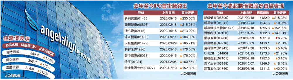 焦點新股/時代天使暗盤倍升 每手賺3.9萬
