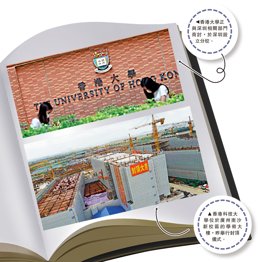 其他本地高校亦加快推進大灣區內教育合作步伐,香港科技大學昨日宣布,位於廣州南沙的新校區的學術大樓,首棟建築完成澆築封頂,封頂儀式昨日舉行。