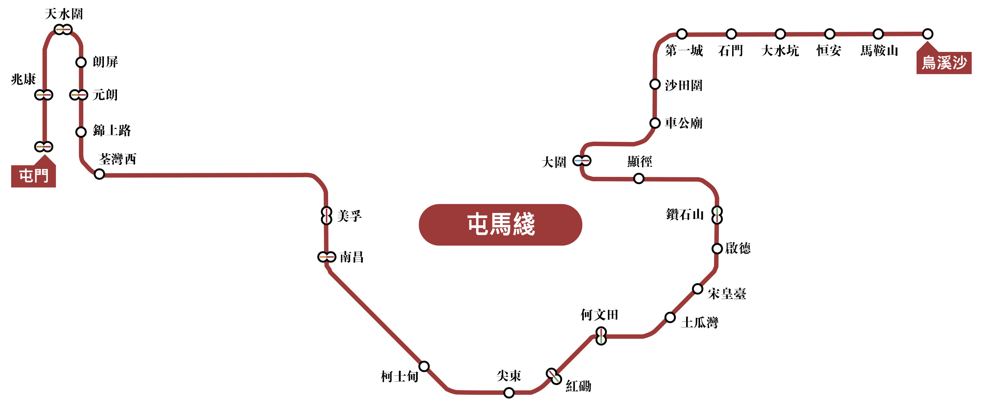 屯馬綫其實並非一條全新鐵路線,而是把經已通車多年的馬鞍山鐵路線、西鐵綫、由昔日曾稱沙中綫之一段串連而成。全條屯馬綫長56.4公里,包含27個車站連接屯門區之屯門站和馬鞍山的烏溪沙站,而新落成串連之車站(即舊稱沙中綫)為顯徑站、鑽石山站、啟德站、宋皇臺站、土瓜灣站、何文田站和紅磡站。