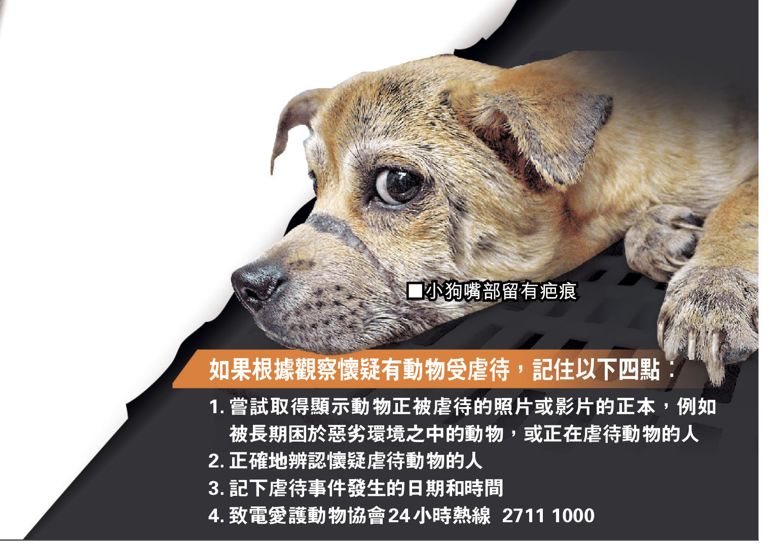 本港最近接連發生殘酷對待貓隻案件,重新引起大眾對虐待動物的關注。市民如果能夠判斷遇到的動物有否遭到虐待,及時伸出援手,隨時可以拯救一條小生命,幫助牠們脫離魔掌。