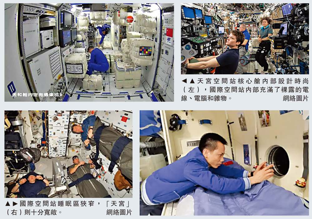 【大公報訊】綜合科技網站Futurism、BBC報道:神舟十三號飛船16日成功發射,其搭載的3名航天員將在中國天宮空間站核心艙在軌駐留6個月。美媒注意到,與天宮空間站核心艙「蘋果商店」一般的設計相比,由美俄等國合作運作的國際空間站(ISS)顯得老舊不堪,遜色不已。