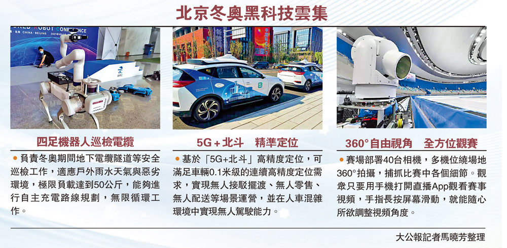 •負責冬奧期間地下電纜隧道等安全巡檢工作,適應戶外雨水天氣與惡劣環境,極限負載達到50公斤,能夠進行自主充電路線規劃,無限循環工作。