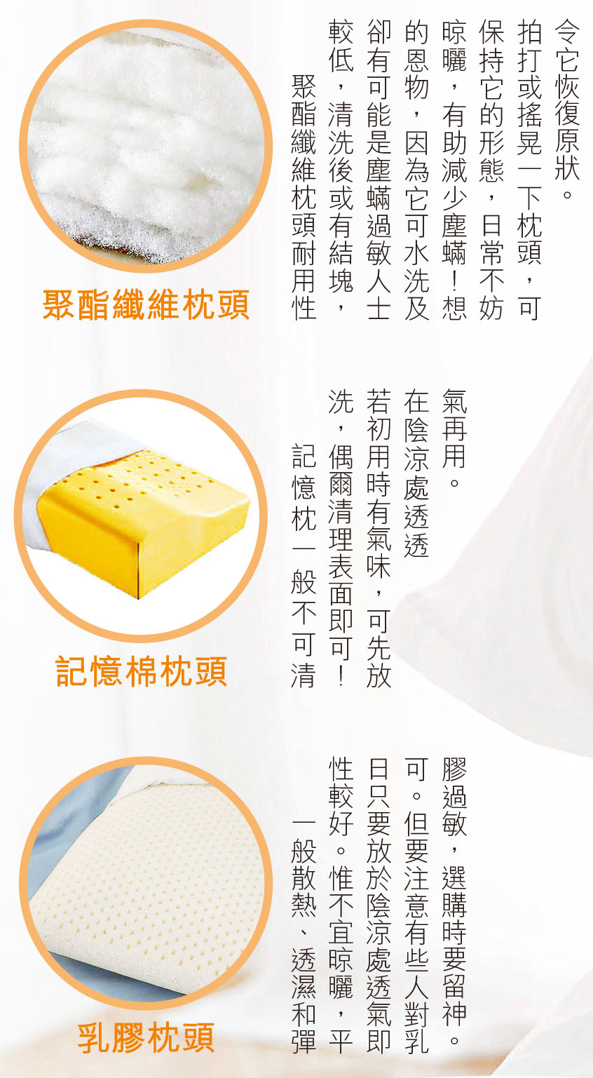 幾乎人人都與枕頭「朝夕相對」,可是你真的了解它嗎?枕芯物料各有不同,要好好「照顧」它,需要採取的保養方式亦不同。