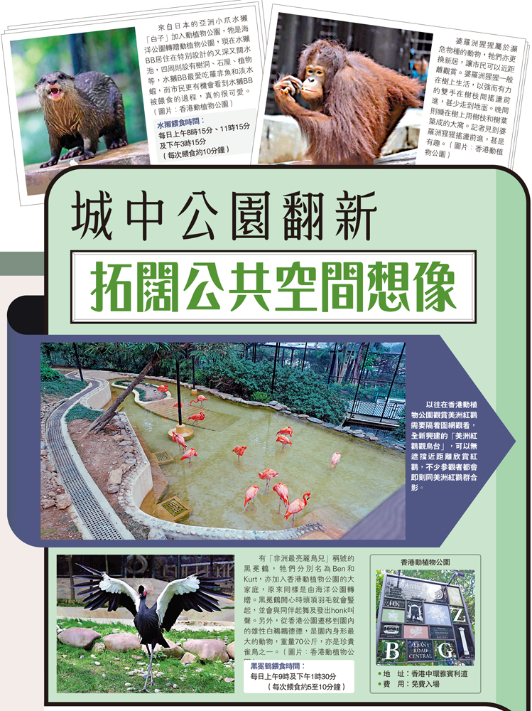 「城市公園系列」開篇介紹了香港面積最大的前三個公園,今期介紹香港翻新後的幾個特色公園。近年香港新建了公園的設備同時,政府亦為部分公園開展了多項改善工程,為市民帶來煥然一新的景象。當中包括:香港歷史最悠久的公園——香港動植物公園,甚具日本沖繩格調的觀塘康寧道公園,以及觀塘海濱花園。