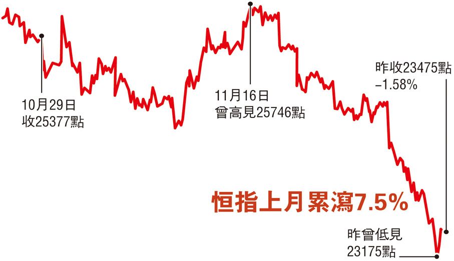 港股失守23500 14月最低 氣氛轉差 恒指上月瀉1901點 後市料續尋底