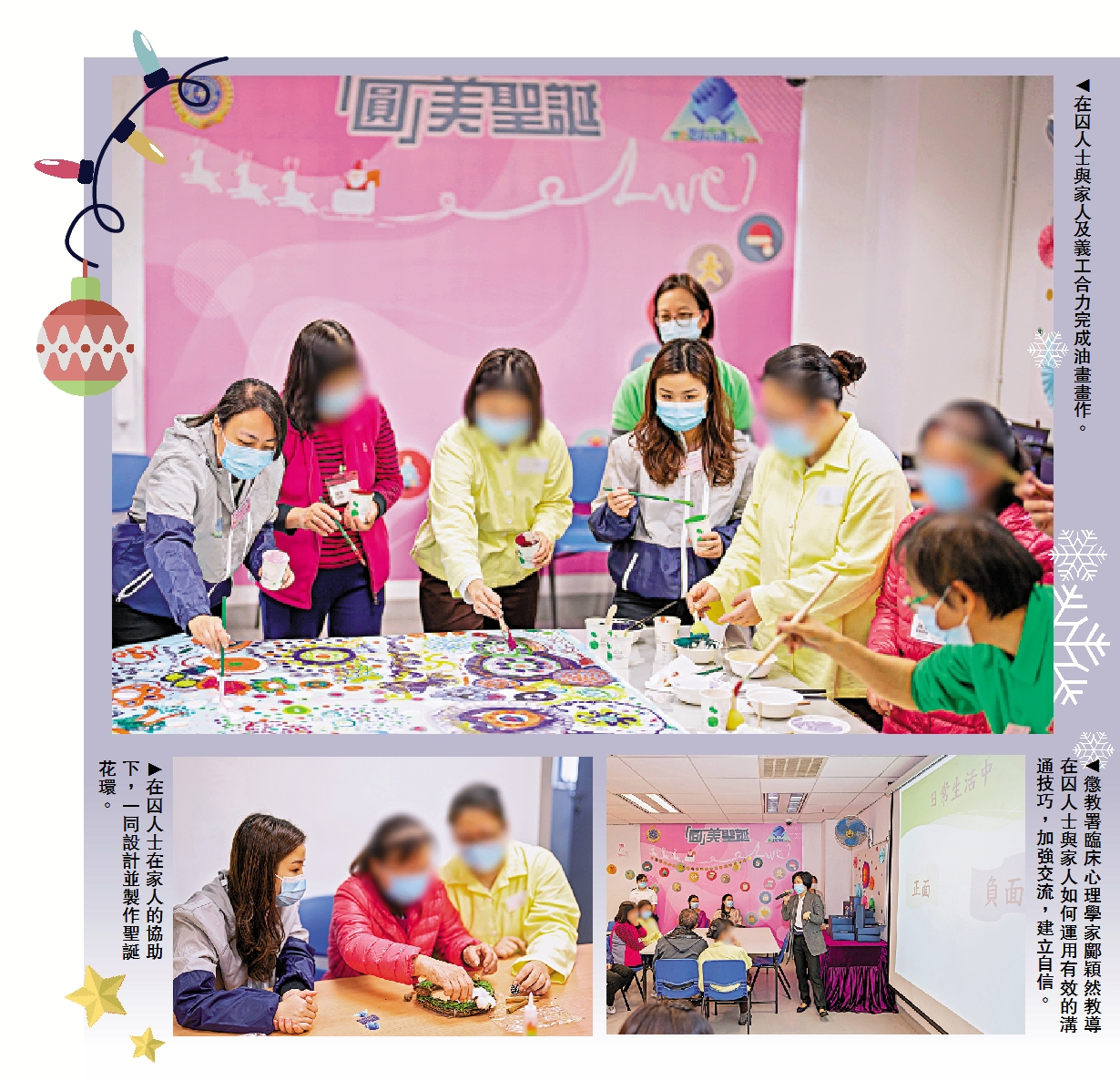 聖誕節前夕,懲教署與警務處合作的「並肩同行」計劃,於本周三為羅湖懲教所10名女性在囚人士及其家人舉辦名為「『圓』美聖誕 並肩同行」活動,發揮正能量。