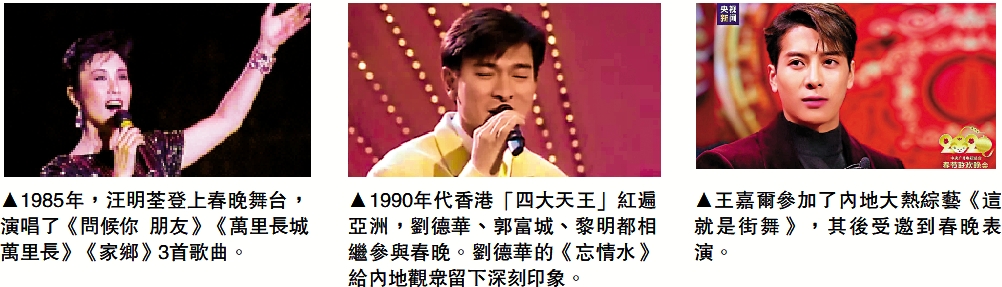 1983年央視春晚一炮打響,崔顥題詩在上頭,給1984年的春晚帶來了壓力。如何再次點燃觀看熱情呢?香港歌手的加盟提供了突破口,身穿中山裝的張明敏一曲《我的中國心》,「風靡全中國,它不僅激發了觀眾愛國之情,更讓全球華人為之觸動。」那一年,登上春晚舞台的還有來自香港的陳思思、李大維。從那時起,每年春晚都有一批香港歌手登台演藝。1985年的羅文、汪明荃,1989年的徐小鳳,1991年的甄妮、鄺美雲,1992年的劉德華……伴隨他們的春晚之旅,港台流行音樂之風吹拂着觀眾的心田,拉近了香港和內地的情感距離。