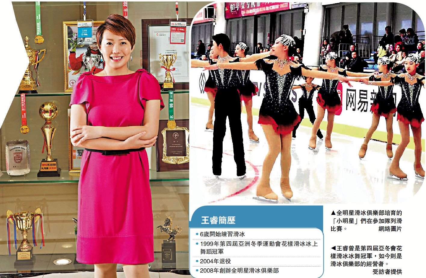 近年,不少國家隊隊員退役後仍延續冰雪情懷,致力培養新生代健兒,第四屆亞洲冬季運動會花樣滑冰冰上舞蹈冠軍「亞洲冰舞皇后」王睿就是其中一位,她執掌的全明星滑冰俱樂部已成為行業領軍品牌。王睿接受大公報專訪時表示,中國申辦冬奧以來「帶動三億人參與冰雪運動」的願景,讓昔日「冷」冰場變「熱」。從賽場轉軌經營管理,華麗轉身,她接下來的目標是「讓更多青少年走上冰場,讓冰雪運動『走出山海關』,讓有潛力的『未來之星』能夠在冰場閃耀」。\大公報記者 張帥