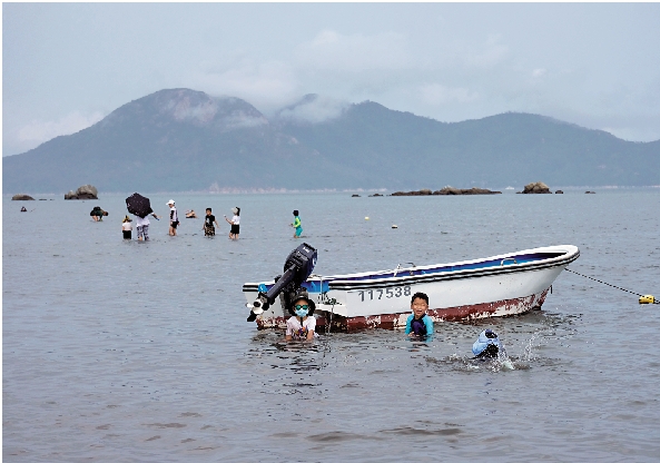 每年四至十月是香港摸蜆季節。位於大嶼山的水口村泥灘擁有大片淺水區,蜆獲豐富,因此成為拍攝天空之鏡和摸蜆的休閒好去處。疫情下學校停課,這裏吸引了許多一家大小前往摸蜆或戲水。