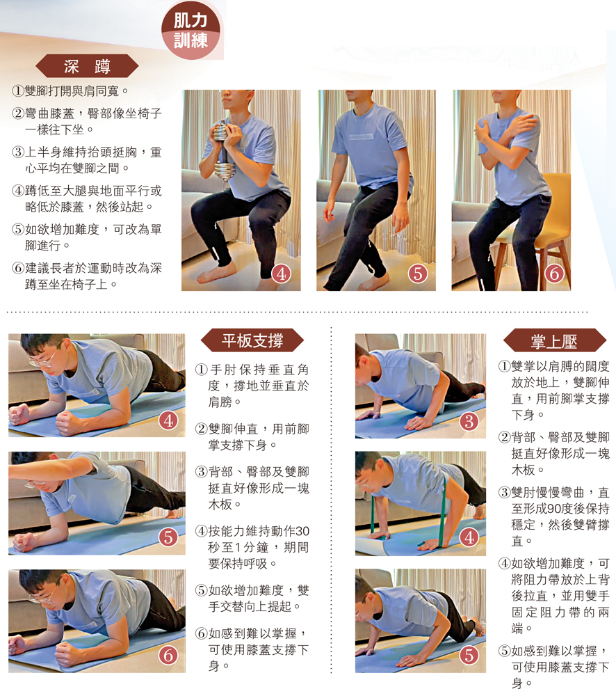 ⑥建議長者於運動時改為深蹲至坐在椅子上。