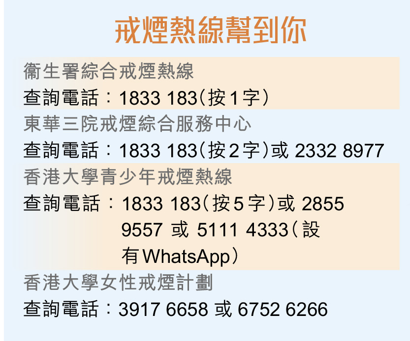 1. 訂下戒煙日期,爭取家人和朋友的支持,在戒煙日前盡量減少吸煙。