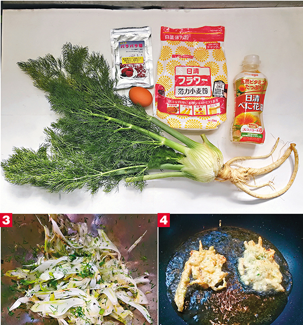1. 茴香洗淨刨成薄片、茴香葉切碎備用;