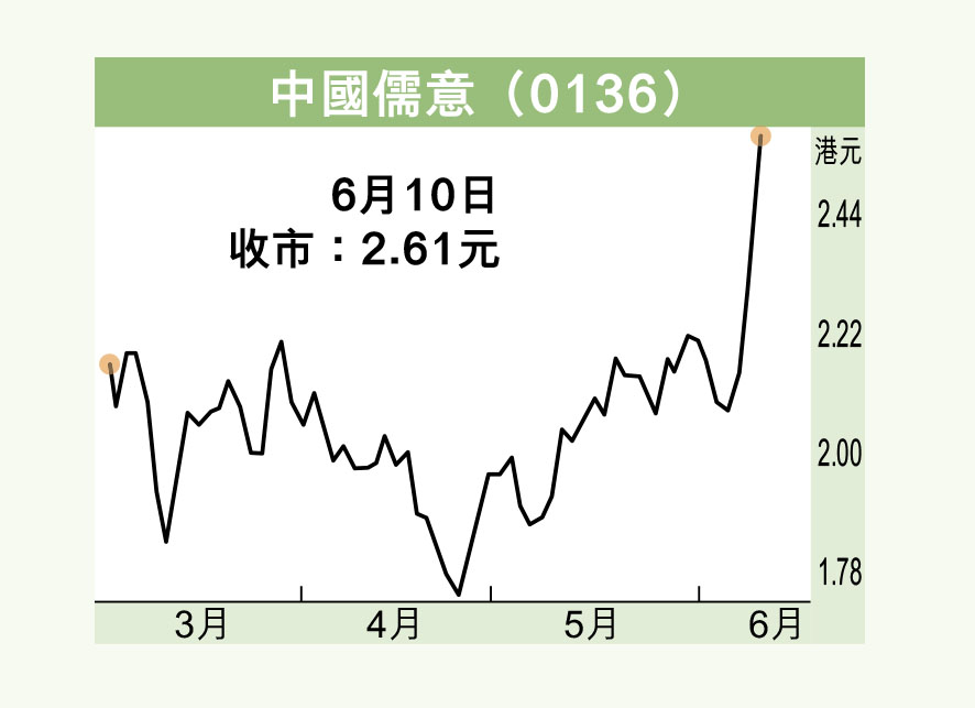 多隻遊戲股上周五(10日)紛見異動炒上,去年年底始進軍遊戲業務、主營流動媒體等板塊、前稱恒騰網絡的中國儒意(0136),股價也發力湧上,曾高見2.64元,為1月初以來高位,收報2.61元,升0.3元或12.99%,無疑短期急升已令其技術走勢變得超買,但集團早前派發的成績表理想,多元化發展前景可予看好,料有利後市表現,不妨續跟進。